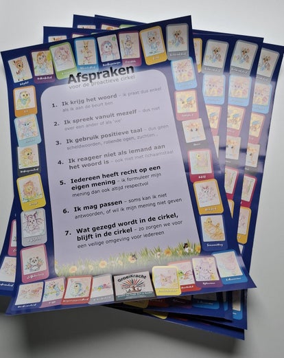 Mooie degelijke affiche op A2 formaat op hoogwaardig papier. Ideaal om in je klas op te hangen zodat de kinderen goed weten hoe de proactieve cirkel verloopt.