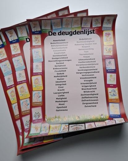 Daarin steken de 48 deugden én de kleurplaten van de 5 deugden uit het deugdenpakket.